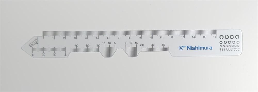 Линейки для подбора очковых оправ предназначены для измерения расстояния между центрами зрачков, ширины и высоты переносицы, диаметра зрачков, расстояния между висками, а также для контроля основных размеров очковых оправ.